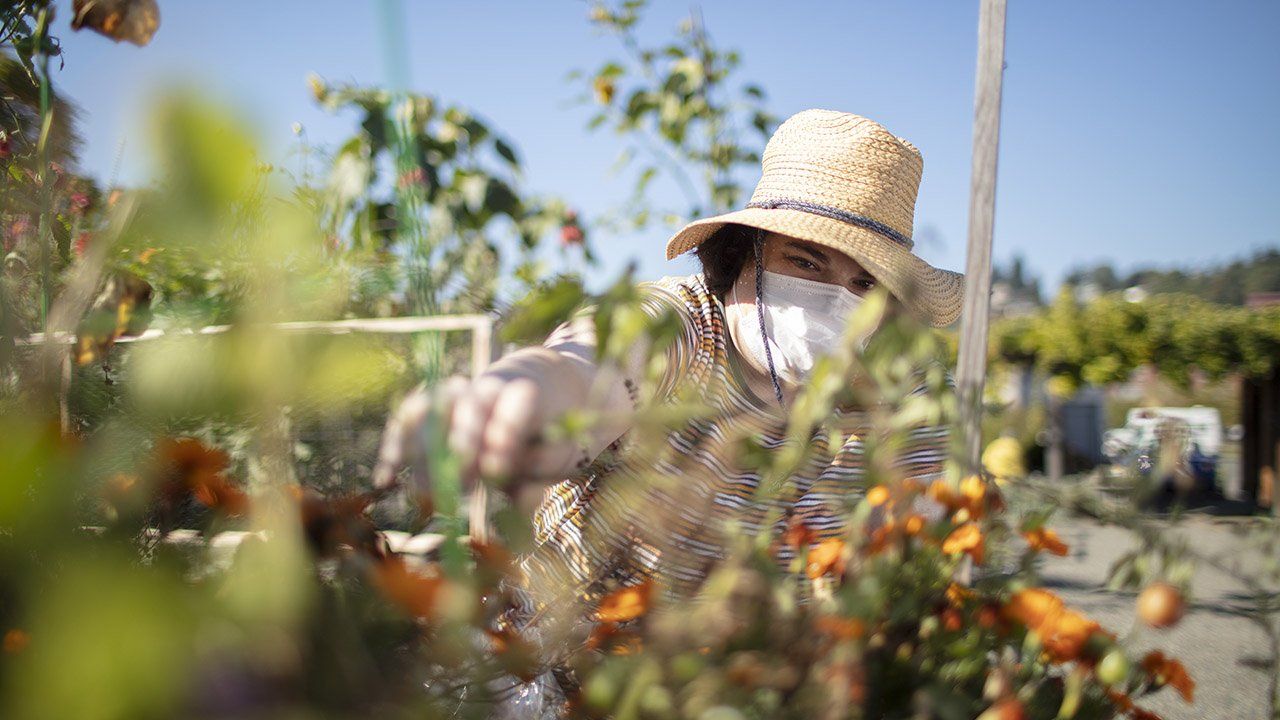 Sarah works in her community garden on Saturday, Sept. 25, 2021. Photo by John Lok